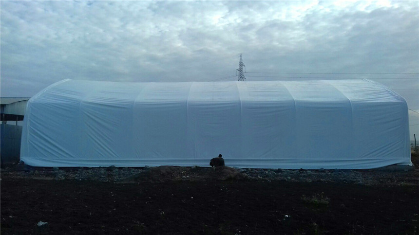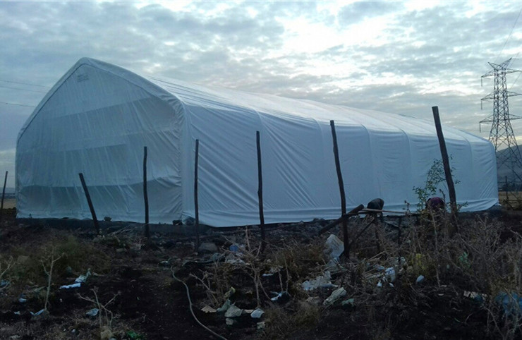 For greenhouse and storage warehouse purpose, our 40'x70'x19' (12.2x21.4x5.8m) and 40'x130'x19' (12.2x39.7x5.8m) fabric building/ warehouse tent are used in this project. Considering the rough environment in Ethiopia, we offered double truss structure for strong wind, and high UV treated PVC fabric for strong sunshine.