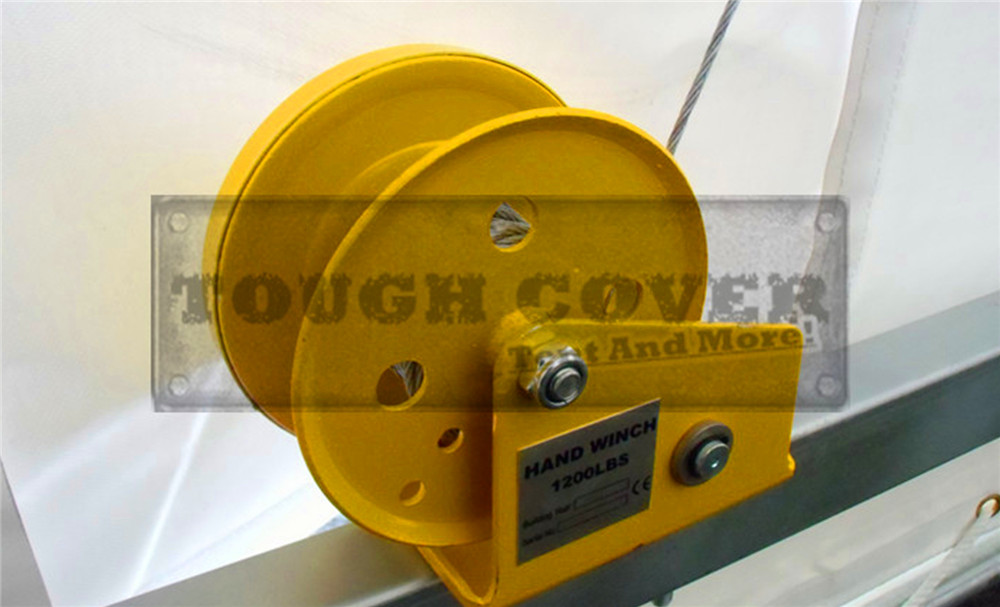1. Size: 40’x60’x19’, 40’x70’x21’, 40’x80’x21’ 2. Hot galvanized, Super Truss Style for Heavy load, With steel wire and turnbuckles. 3. Winch roll up door, size: W4.6 x H5.2m (W15’ x H17’) 4. 300g/m2 PE or 610g/m2 PVC with 10 years longevity